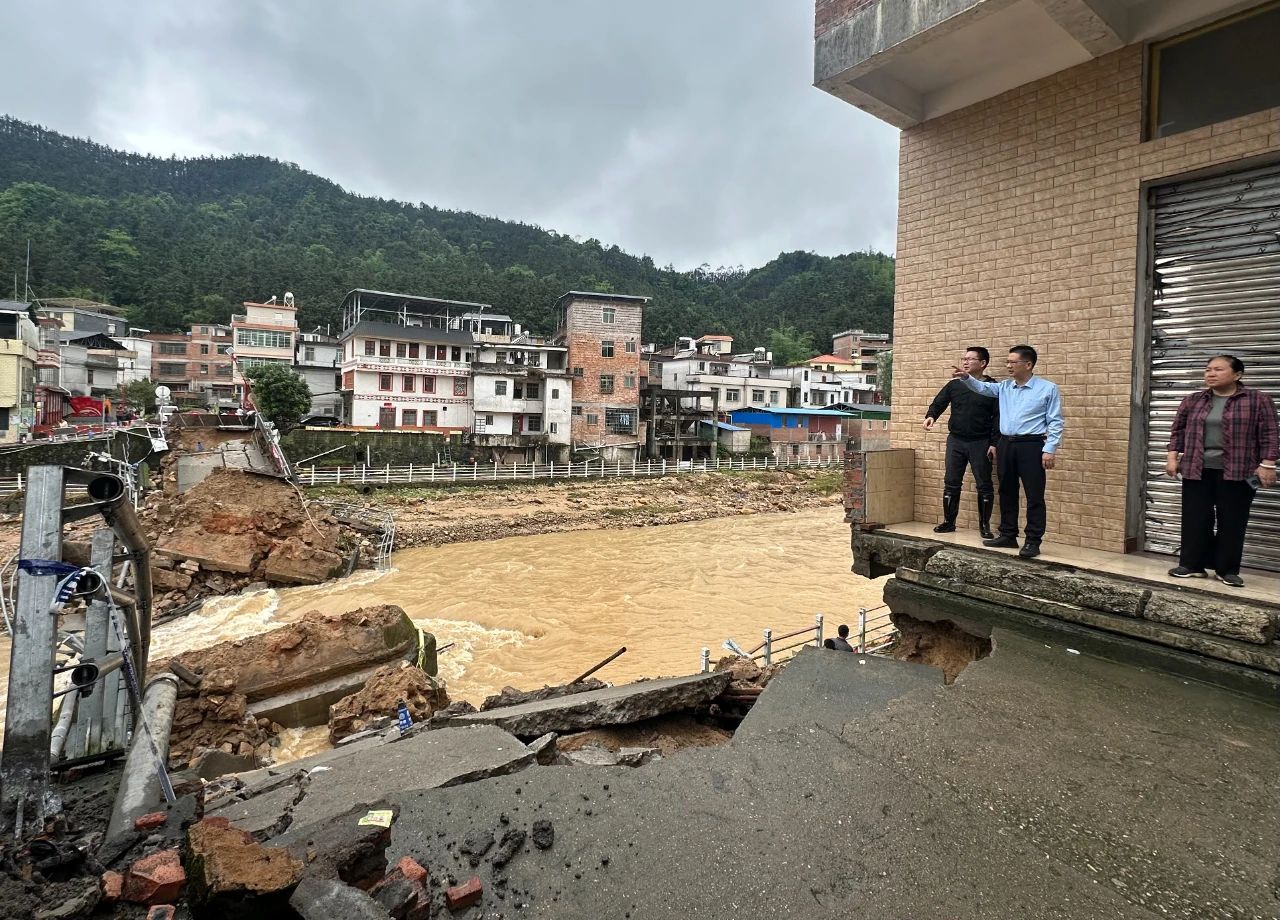 随后,许崇砚率队到小三江镇、革命老区上帅镇督导检查防汛工作,强调要深入学习贯彻习近平总书记关于防汛救灾工作重要指示精神,认真落实省、市防汛抗洪视频调度部署要求,坚决克服麻痹思想,杜绝侥幸心理,全面压紧压实防汛工作责任,把各项防御措施抓实抓细抓到位,全力以赴保障人民群众生命财产安全。在小三江镇市场桥梁倒塌现场、革命老区上帅镇道路塌方路段等地,许崇砚通过实地察看,现场听取相关部门汇报,详细了解受灾情况、人员转移、隐患点排查等情况,叮嘱村民和值守人员一定要注意自身安全,并就做好相关工作进行现场指导。