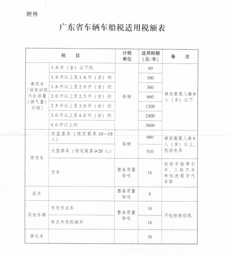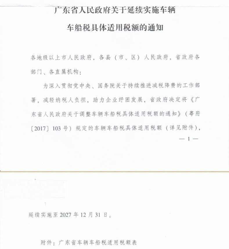 广东省人民政府关于延续实施车辆车船税具体适用税额的通知