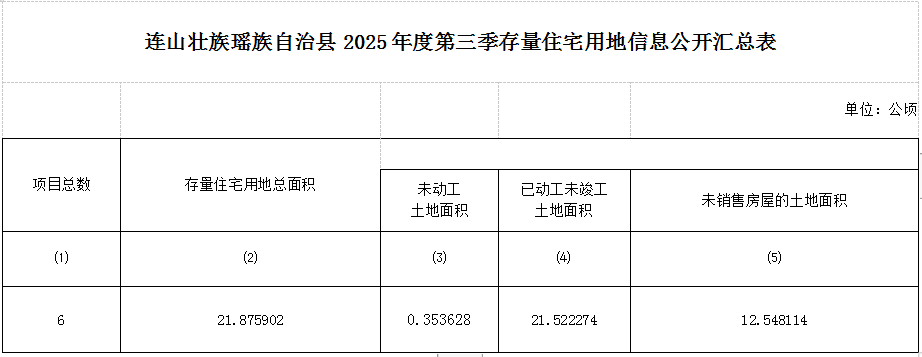 连山壮族瑶族自治县2025年度第三季存量住宅用地信息公开汇总表